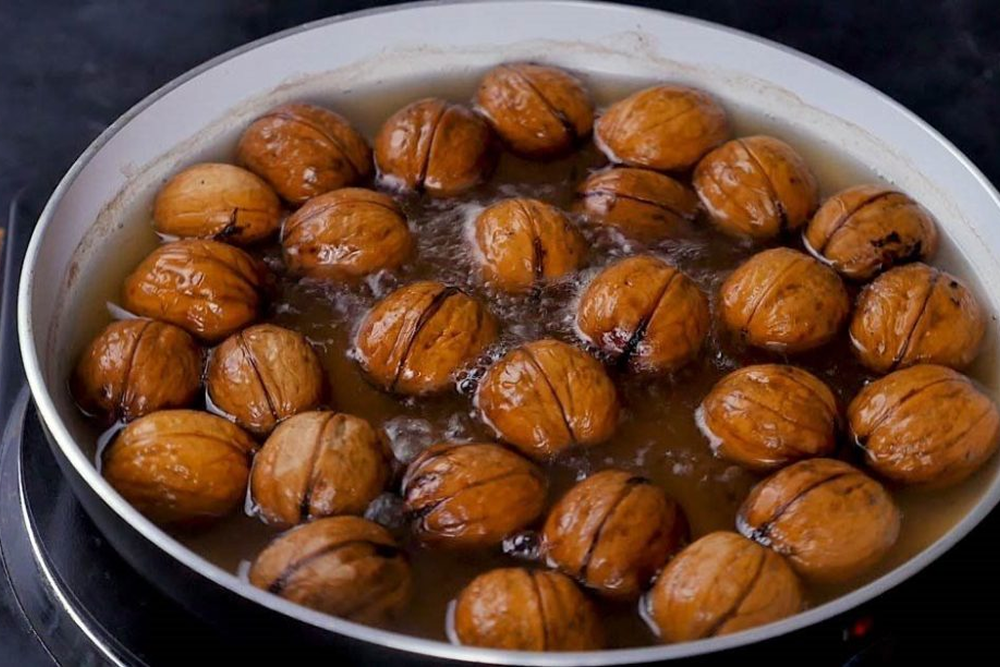 1. First you need to bring to a boil the volume of water that should correspond to the number of nuts that you decided to finally peel from the shell.